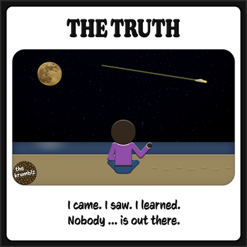 In the universe there is life. But is it insignificant and meaningless? Fireflies in the dark emptiness of space. Flash. Flash. Flash. Communication. Not conversation. Would Fox Mulder be disappointed? Alone. Is truth.