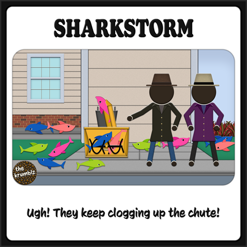 My brain? I was thinking about the snowstorm. And “Sharknado” popped in my head. Then I contemplated how wet snow clogs a snowblower. Which led to pondering what would happen with sharks. Start to finish? About three seconds.