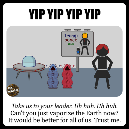 Slowish news day + lack of creative energy = this. Why not weaponize some more of my childhood? Up next: Romper Room and Captain Kangaroo. Meep meep. Yip yip yip yip. Uh huh uh huh.
