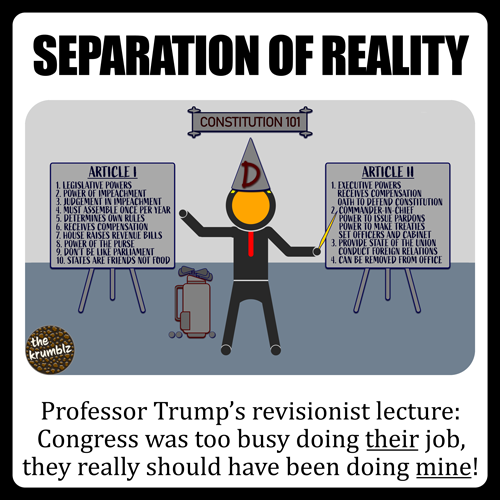 Let's go check the "tape" from the Constitutional Convention. Yep, all checks out, Professor Trump is right. Clearly Congress owns that foreign relations and defense of the nation stuff. Leave "oversight" to Fox News and OAN, then?