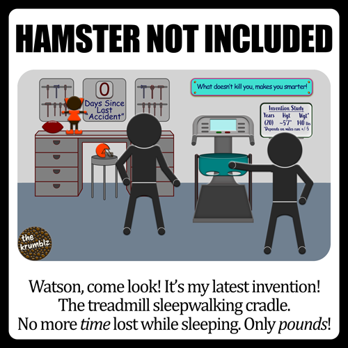 Why not? I ran out of ideas. Booooo! I used to sleepwalk and I hate treadmills, but no longer enjoy running outside during the winter. With a 4'10" mom and 5'4" dad - I should be happy. (And yes I sleep in my office.)